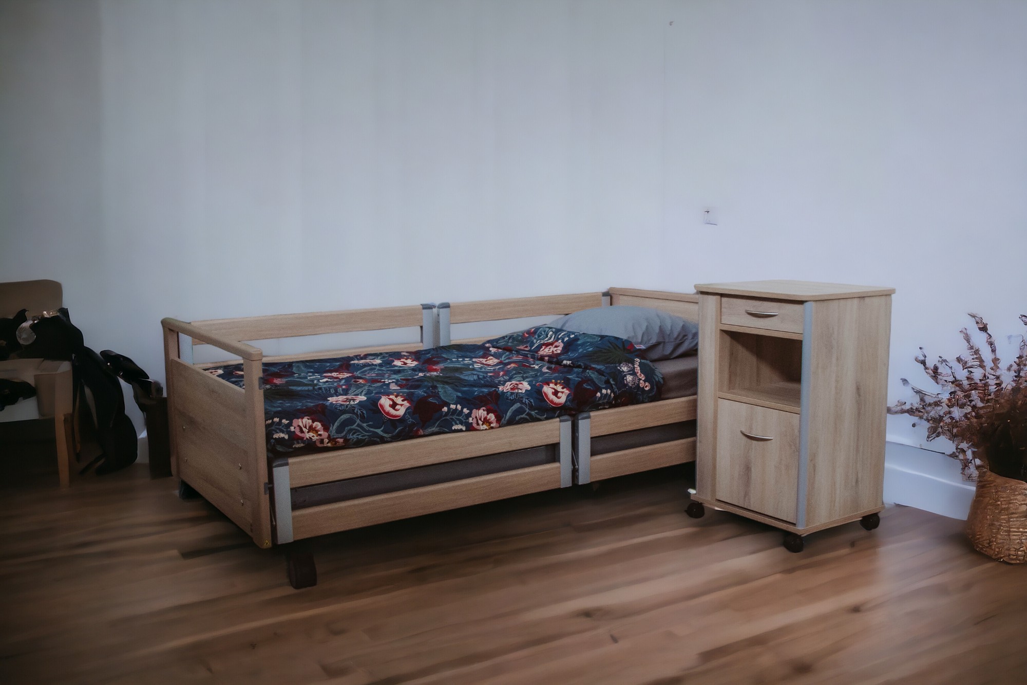 Wist u dat onze studio altijd eerst start in het kamerplan met het vastleggen van het Formidabel First zorgbed? Het Formidabel First zorgbed is het hart van de bewonerskamer, dit gecombineerd met een comfortabel en brandveilig zorgmatras is de basis om de omgeving van de bewoner verder af te stemmen. Uiteraard staat FMB care volledig achter het zoveel mogelijk personaliseren van de bewonerskamer met haar of zijn eigen input. Indien de bewoner een eigen kast wenst, maar de zorg wel over een afsluitbare module wil beschikken, kan FMB care deze ook in de natte ruimte creëren. Kortom, tal van mogelijkheden en in een tijd dat er steeds meer voor een beperkt aantal leveranciers wordt gekozen, ziet FMB care het TotaalKamerConcept (TKC) toenemen. U heeft dan één aanspreekpunt en achter de schermen organiseren wij de complete metamorfose van uw bewonerskamer incl. de natte ruimte. Neem gerust eens contact met ons op om samen stil te staan bij de mogelijkheden, info@fmb-care.nl.